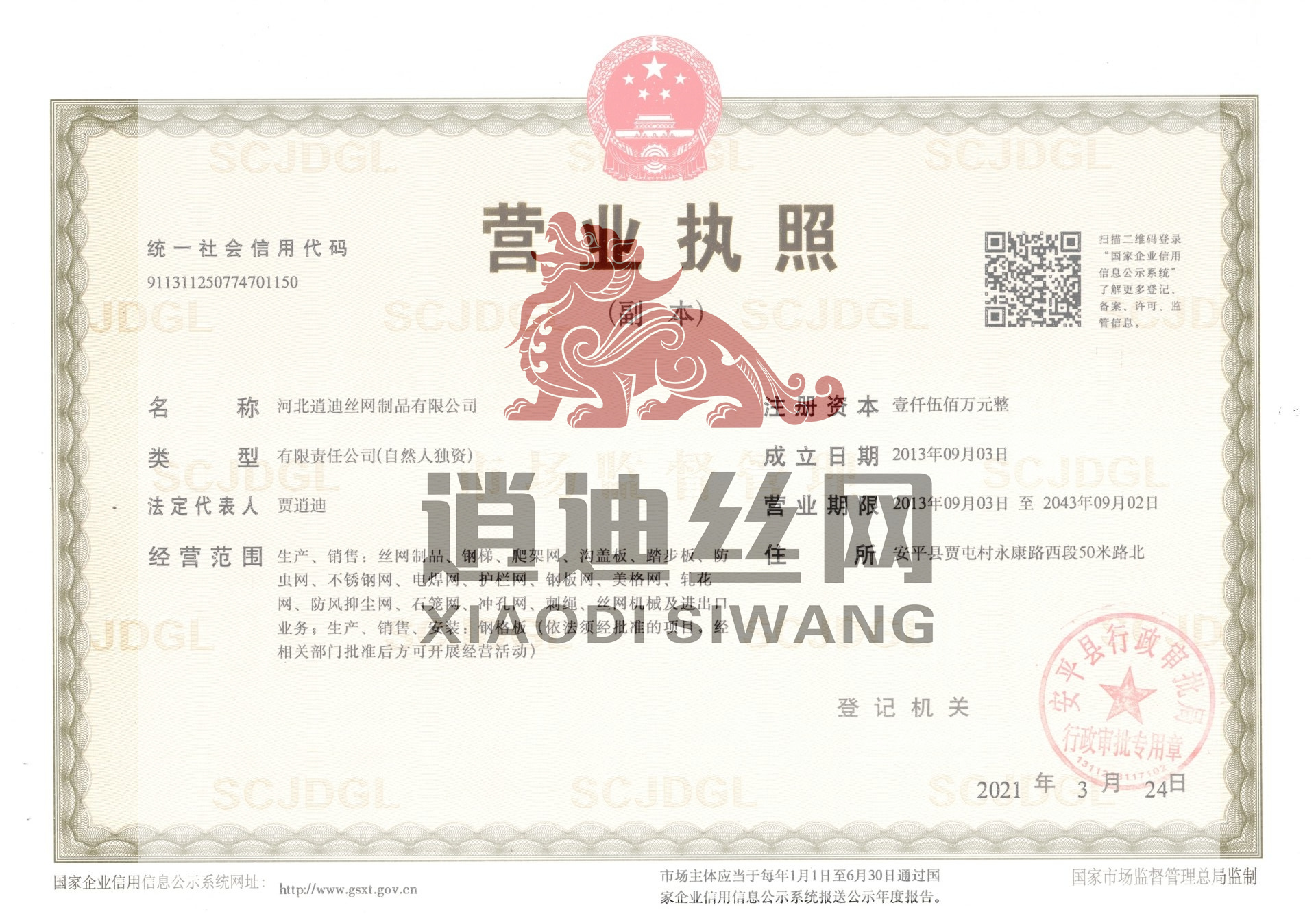 河北逍迪絲網(wǎng)制品有限公司誠(chéng)信天下,誠(chéng)信是我們公司一個(gè)原則問(wèn)題不可撼動(dòng)的,以心中有誠(chéng)信的思想結(jié)交五湖四海的朋友,能達(dá)到雙贏是最好的,我們堅(jiān)信朋友多了路好走,我們公司都是老朋友多,我們一直是這樣做的。河北逍迪絲網(wǎng)制品有限公司成立于2013年注冊(cè)資本壹仟伍佰萬(wàn)整,主要生產(chǎn)沖孔網(wǎng),鋼格板,金屬防蟲(chóng)網(wǎng),如實(shí)的實(shí)體廠(chǎng)家,是一家-研發(fā)-銷(xiāo)售-生產(chǎn)-安裝-售后一條龍公司,2019年通過(guò)了ISO 9001認(rèn)證管理體系符合GB/T 19001-2016/ISO 9001:2015標(biāo)準(zhǔn),同時(shí)通過(guò)了SGS認(rèn)證,擁有商標(biāo)版權(quán)2品牌,擁有一個(gè)著作版權(quán),河北逍迪絲網(wǎng)制品有限公司位于中國(guó)有名的(絲網(wǎng)之鄉(xiāng))安平縣,于天津,北京,雄安,石家莊相鄰,交通非常發(fā)達(dá),出口可以選擇天津港口非常近每天都有接貨送貨往返車(chē)輛,空運(yùn)可以選擇石家莊正定機(jī)場(chǎng),附近也有鐵路運(yùn)輸,當(dāng)?shù)剡€有兩個(gè)生態(tài)物流園區(qū)發(fā)往全國(guó)各地,我們沖孔網(wǎng)工廠(chǎng)生產(chǎn)設(shè)備有:普通沖壓機(jī),高速?zèng)_壓機(jī),自主研發(fā)小微孔沖壓機(jī),龍門(mén)沖,磚塔沖孔,重型沖孔機(jī),萬(wàn)瓦級(jí)別激光切割機(jī),3000W激光切割機(jī),焊接設(shè)備,折彎?rùn)C(jī),校平機(jī),剪板機(jī),精密校平機(jī),(對(duì)板面平整度要求苛刻的客戶(hù)群體0.5-0.2誤差)我們公司銷(xiāo)售市場(chǎng)沒(méi)有局限性國(guó)內(nèi)國(guó)外都供應(yīng),擁有出口權(quán)...